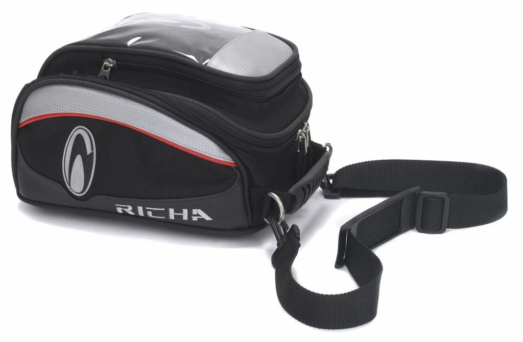 De Richa Dinky is een compacte tanktas ontworpen voor korte trips. Het voordeel van een compacte tanktas is dat deze niet in de weg zit tijdens het rijden. De Dinky heeft een volume van 10 liter en kan door magneten op de tank worden bevestigd.
