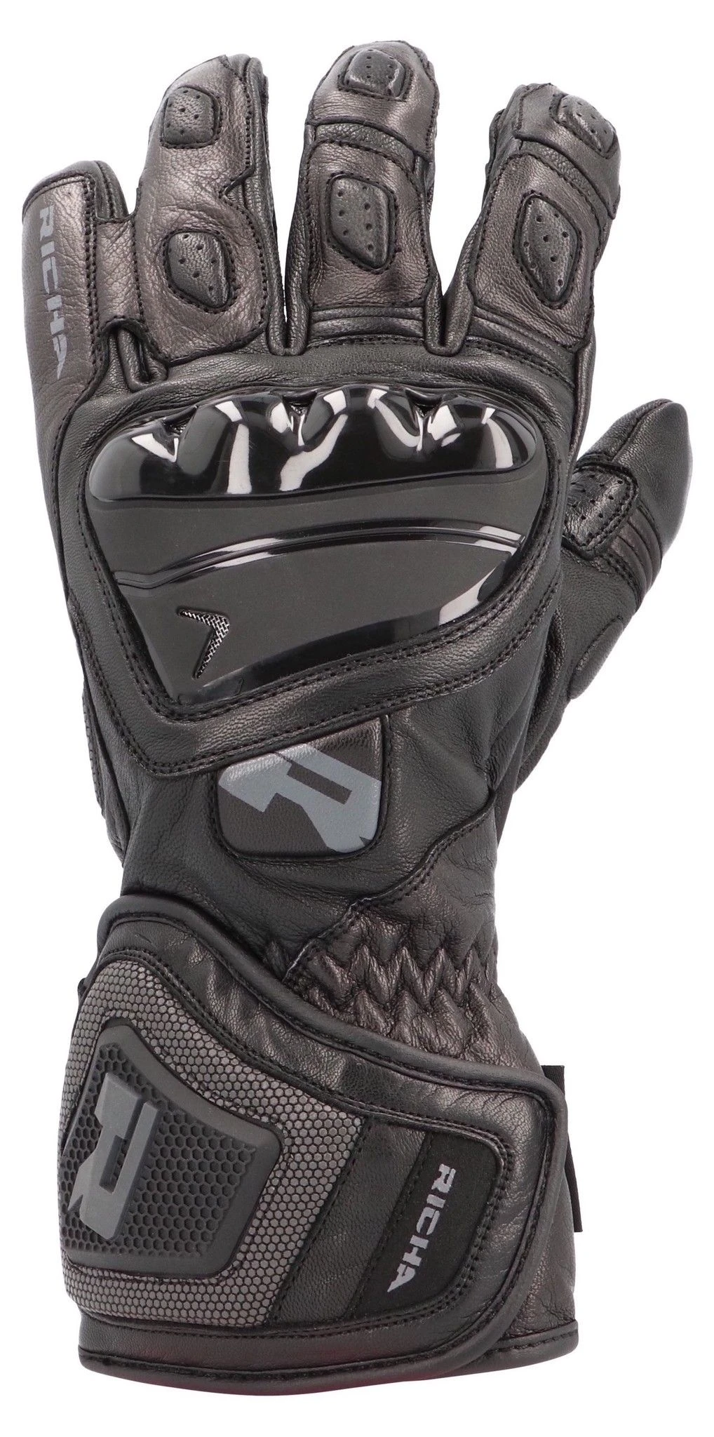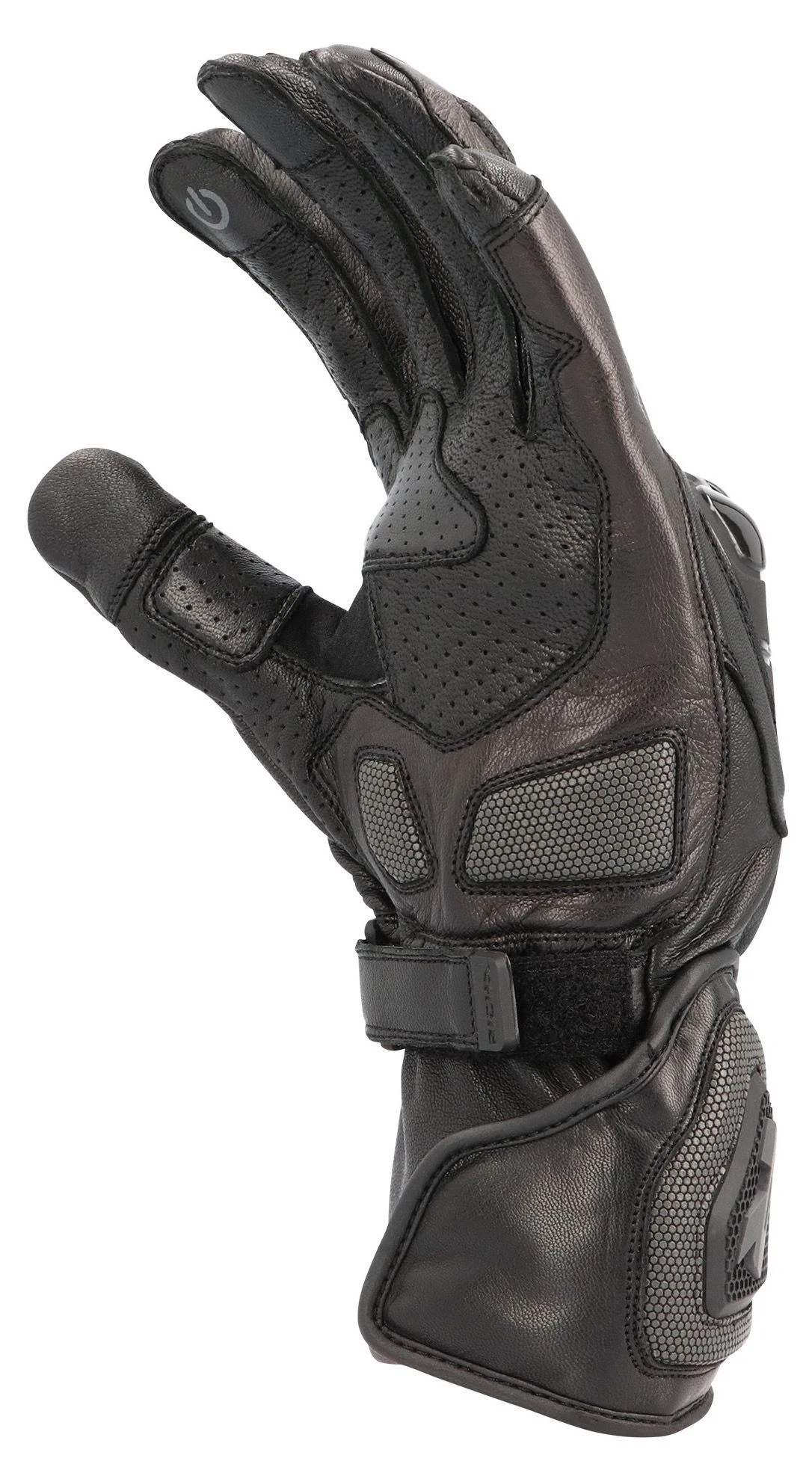 De Richa Savage 3 is gemaakt van volnerf geitenleder in combinatie met veiligheidsstiksels. Op de knokkels zit een harde protector en een laag temperfoam. Op de handpalm bevindt zich een ultrasterke Superfabric laag. Het leder is geperforeerd voor extra ventilatie. De Savage 3 handschoenen trek je gemakkelijk aan en uit dankzij de speciaal daarvoor voorziene lus. De dubbele klittenbandsluiting ter hoogte van de pols garandeert dat de motorhandschoenen een hele dag als gegoten zitten.