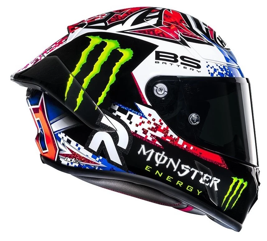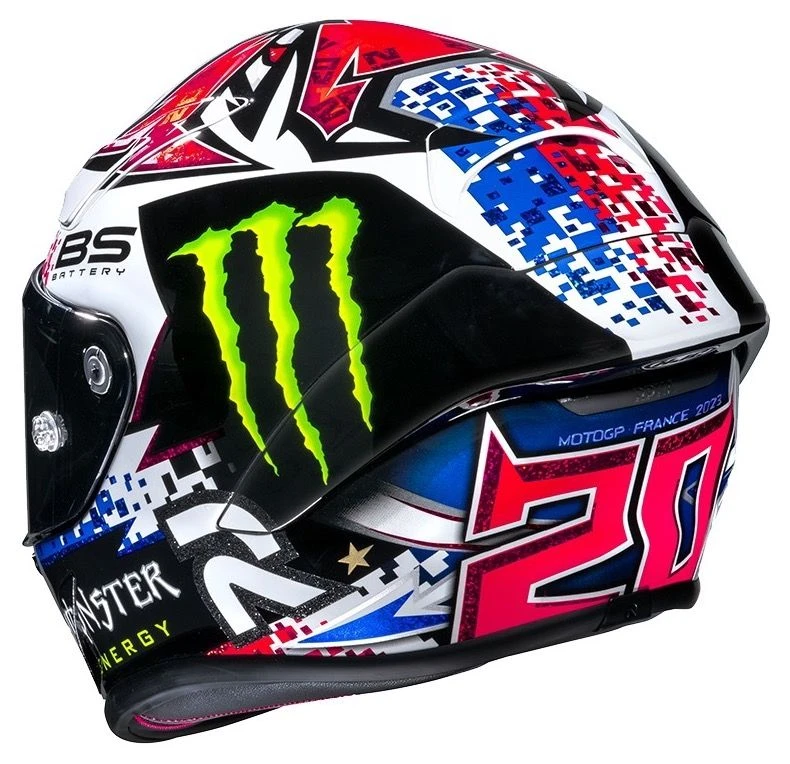 De HJC RPHA 1 Fabio Quartararo Le Mans Replica motorhelm waar in zowel de MotoGP als Moto2 de nodige podiumplekken zijn behaald is nu verkrijgbaar voor het gewone publiek. Deze op topprestaties ontwikkelde racehelm beschikt over een aerodynamisch geoptimaliseerde helmschaal met geïntegreerde spoiler. Geheel gecertificeerd volgens de ECE 22.06 norm en FIM Racing gehomologeerd. Dankzij het grote vizier blijf je scherp in het heetst van de strijd. Inclusief Pinlock 120 vizier en tear-off voorbereiding. Inbegrepen zijn bovendien een tear-off set en transparante racing spoiler.