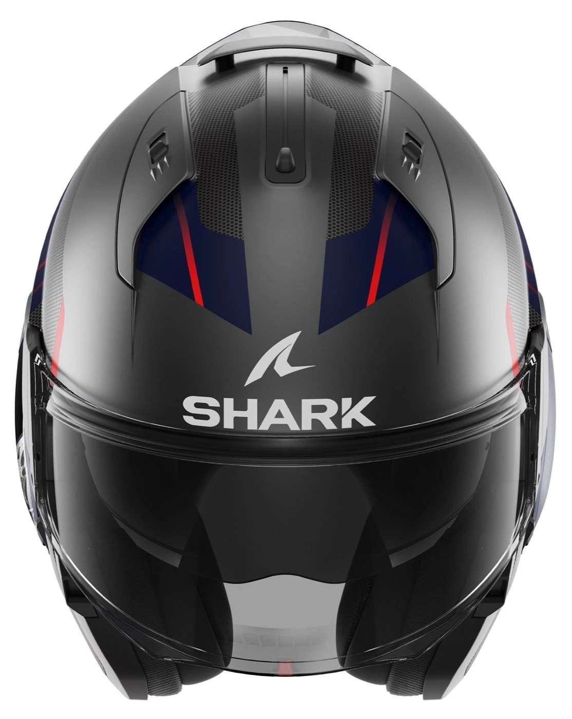De Shark EVO ES borduurt voort op de succesformule van de flip-over systeemhelm. Op deze wijze is het kinstuk wegklapbaar naar de achterzijde van de helm. Hierdoor wordt een slank profiel gerealiseerd waarbij je minimale hinder van de rijwind ervaart op het moment dat je met open helm rijdt in en om de stad. Verder is deze polycarbonaat systeemhelm voorzien van alle touring eigenschappen. Een ruim blikveld door het optisch klasse 1 vizier met onderliggend een groot zonnevizier met UV380 bescherming.